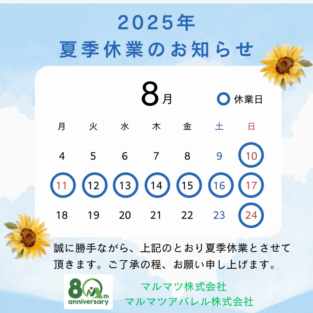 〜夏季休業のお知らせ〜